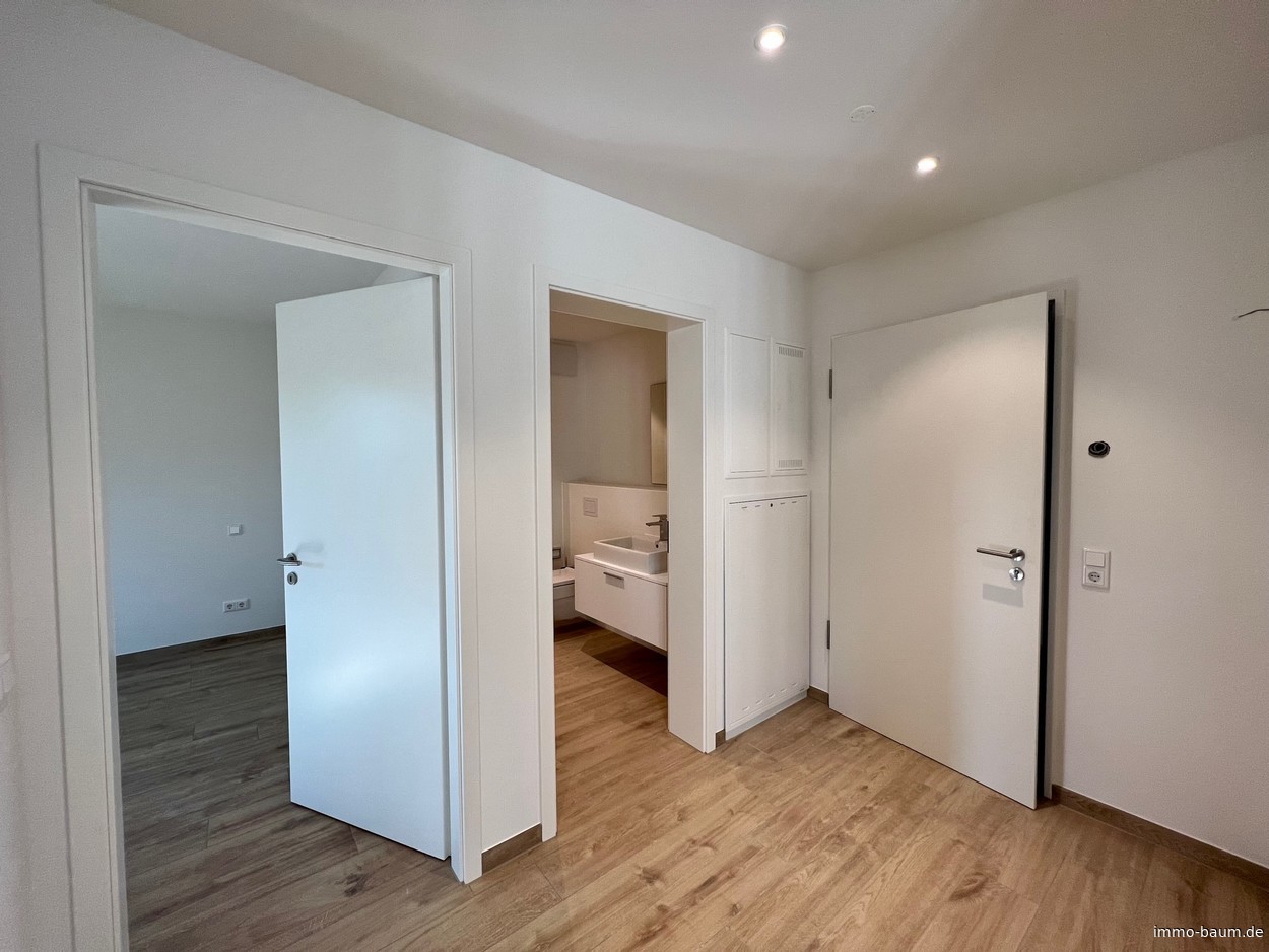 Die zu verkaufende zwei Zimmer Neubauwohnung befindet sich einem Mehrfamilienhaus in Waldkirch, die im Herbst 2023 bezugsfertig erstellt wird. Das Haus liegt nahe dem Waldkircher Zentrum, von dort sind es nur wenige Schritte bis zur Lange Straße, die sich als Haupteinkaufsstraße durch Waldkirch zieht und an der viele Geschäfte des täglichen Bedarfs zu finden sind. Überhaupt bietet Waldkirch eine tolle Infrastruktur, gerade für Familien: Grund- und Realschule, Gymnasium und Freibad, Kino und zahlreiche Sportvereine. Auch verkehrstechnisch liegt das Objekt sehr gut; so ist die Bundesstraße 294 in 5 Minuten zu erreichen. 2020 wurde die Elztalbahn zwischen Denzlingen und Elzach elektrifiziert, was die Anbindung ins Elztal sowie nach Freiburg nochmals deutlich verbessert hat. Die gut geschnittene zwei Zimmer-Wohnung befindet sich im 2. Obergeschoss und ist bequem von der Tiefgarage mit dem Aufzug erreichbar. Vom überdachten Süd-West-Balkon, hat man einen herrlichen Ausblick auf die Kastellburg und in Richtung Kandel. Die Fußböden in den einzelnen Räumen werden mit Bodenfliesen in Holzoptik, Oberfläche matt (20 x 120 cm) von Villeroy & Boch gefliest. Die einzelnen Räume werden mittels Fußbodenheizung beheizt und eröffnen vielfältige Stellmöglichkeiten ohne störende Heizkörper. Die Innentüren mit Rundkante sind passend zur Türzarge weiß lackiert und mit Edelstahlhandgriffen ausgestattet. Das Bad mit Fenster und bodentiefer Dusche mit Echtglasduschkabine, Handtuchwärmekörper und Deckenspots, wird mit einem Waschtisch mit Unterschrank von DURAVIT ausgestattet, die Duscharmaturen sind von HANSGROHE. In der Diele und in dem praktischen Abstellraum, sind ebenfalls Deckenspots installiert. Der gemütliche, helle Wohn-Essbereich mit offener Küche, bietet vielfältige Gestaltungs- und Möblierungsmöglichkeiten. Zur Wohnung gehört ein Kellerraum und ein Tiefgaragenstellplatz, der zusätzlich 28.000,-- € kostet. Vereinbaren Sie einen Termin und lassen sich von der Wohnung und Lage überzeugen.Grundrisse