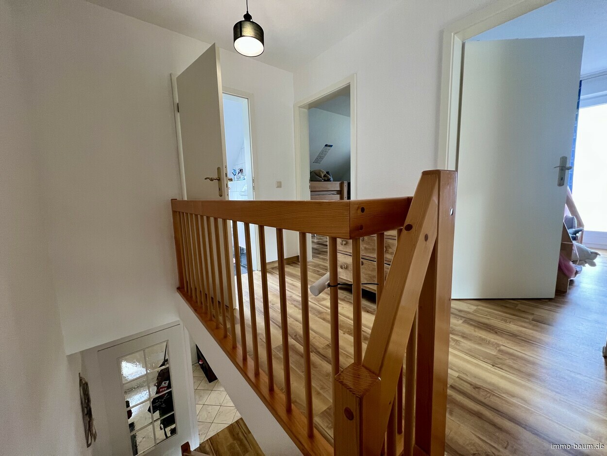 Diese helle und gut geschnittene 3,5 Zimmer-Maisonettwohnung bietet auf einer Gesamtfläche von ca. 89 m² ein gemütliches Zuhause für Paare, Familien oder auch Einzelpersonen, die eine ruhige Wohnlage und gleichzeitig eine gute Erreichbarkeit der umliegenden Städte schätzen. Das Gebäude, das im Jahr 1996 errichtet wurde ist gepflegt und in einem guten Zustand. Die Wohnungen im Obergeschoss des Hauses sind über einen Laubengang zugänglich. Die Wohnung erstreckt sich über zwei Etagen und sorgt mit ihrem durchdachten Grundriss für eine angenehme Wohnatmosphäre. Im unteren Bereich der Maisonettwohnung erreicht man über die Diele das Duschbad und die Küche sowie den großzügigen Wohn- und Essbereich mit direktem Zugang zum Balkon. Über die schöne Holztreppe gelangt man auf die zweite Ebene ins Dachgeschoss. Dort befinden sich das Schlafzimmer, das Kinderzimmer mit Zugang zu dem zweiten Balkon sowie das zweite Bad mit Wanne und Fenster. Der großzügige Abstellraum mit Fenster auf dieser Ebene, kann auch als kleines Büro genutzt werden. Zur Wohnung gehören einen Carport und ein Außenstellplatz, die zusätzlich 15.000,-- EUR kosten. Der zur Wohnung gehörende große Kellerraum, bietet zusätzlichen Stauraum zur praktischen Aufbewahrung von Haushaltsgegenständen. Für weitere Informationen oder zur Vereinbarung eines Besichtigungstermins stehen wir Ihnen gerne zur Verfügung.